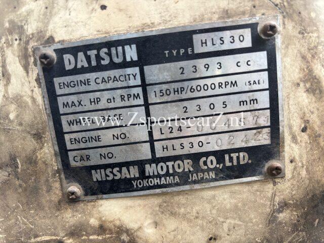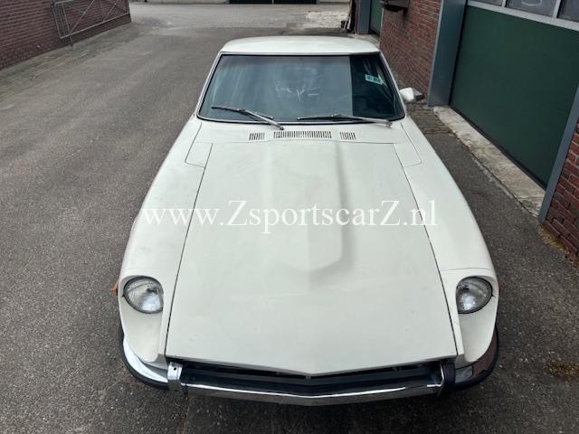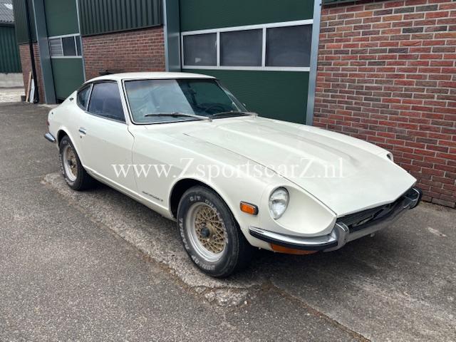 Sehr frühes Datsun 240Z Coupé Series 1 aus dem Jahr 1970 mit Arbeit – Produziert 2/70 und titled 1970 – Alle originalen Merkmale der Serie 1 sind noch vorhanden – Originaler L24-Motor; Motor läuft – Im Originalfarbe Kilimanjaro White – Originales Schaltgetriebe – Sehr solides und rostfreies Auto mit originalen Unterböden und niemahls geschweißt! –  Sehr selten; Solche Autos gibt es in diesem rostfreien Zustand nicht mehr! – Kürzlich in einer Betongarage in Phoenix, Arizona, entdeckt worden wo der Wagen seit 2003 gelagert war – Dieser Datsun ist in unserem showroom in Holland und Steuer und Importgebuhren sind schon bezahlt worden – USA Import; alle Dokumente fur einen EU Kennzeichen sind dabei – Besichtigung nur nach Vereinbarung – Lieferung von dem Wagen ist moglich