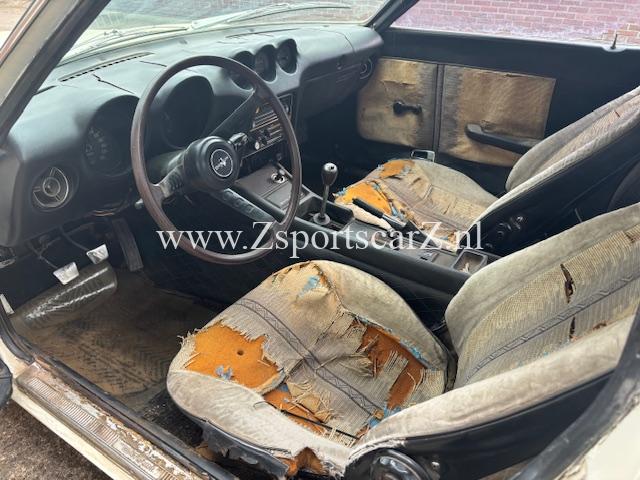 Very early 1970 Datsun 240Z Coupe Series 1 which needs work – Produced 2/70 and titled 1970 – All original Series 1 features are still present – Original L24 engine; engine runs – In the original color Kilimanjaro White – Original manual transmission – Very solid and rust free car with original floors and never been welded! – Very rare; cars like this are no longer found in this rust-free condition! – Recently discovered in a concrete garage in Phoenix – Arizona where it was stored since 2003 – This Datsun is at our showroom in Holland and all importduties and VAT have been paid already – USA import; all documents for obtaining an EU registration are present – Viewing by appointment only – Delivery of the car is possible