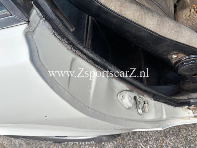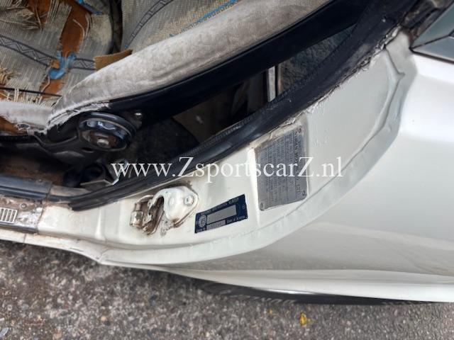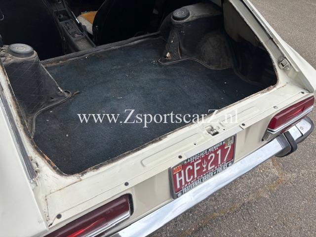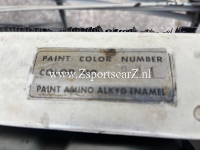 Zeer vroege Datsun 240Z Coupe Series 1 uit 1970 met werk – Geproduceerd 2/70 en titled 1970 – Alle originele Series 1 kenmerken zijn nog aanwezig – Originele L24 motor; motor loopt – In de originele kleur Kilimanjaro White – Origineel handgeschakeld – Zeer solide en roestvrije auto met originele vloeren en nog nooit aan gelast! – Zeer zeldzaam; zulke autos zijn in deze roestvrije staat niet meer te vinden! – Recent ontdekt in een betonnen garage in Phoenix – Arizona waar de auto sinds 2003 opgeslagen stond – Deze Datsun staat op voorraad in onze showroom in Nederland en alle invoerrechten en BTW zijn reeds betaald – USA import; alle documenten voor het verkrijgen van een Europees kenteken zijn aanwezig – Bezichtiging alleen op afspraak – Levering van de auto is mogelijk