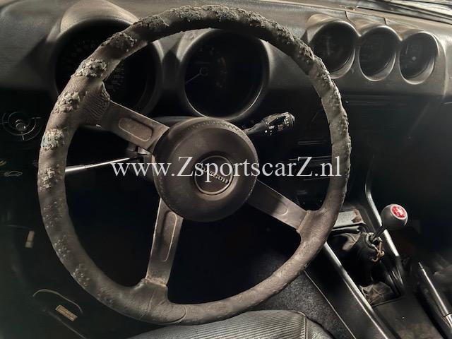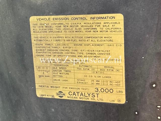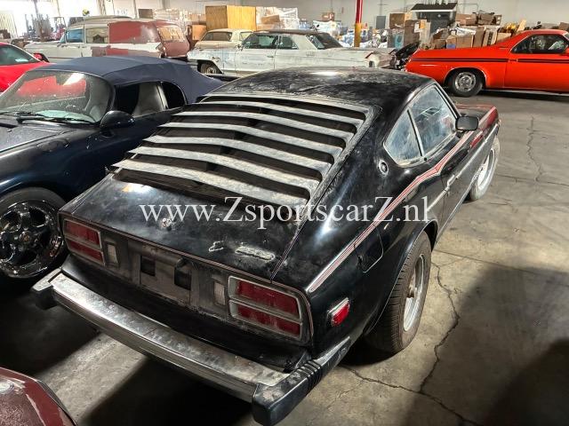 Hier hebben we iets bijzonders: een originele en onverprutste Datsun 280Z Coupé Black Pearl Edition – Met de originele en Matching L28-motor en een handgeschakelde vijfversnellingsbak – Nog steeds in de originele eerste fabriekslak met de originele Black Pearl-stickers – De auto heeft jarenlang in opslag gestaan, dus hij rijdt niet, maar de motor draait vrij rond met de hand – Een auto van de eerste eigenaar, met het originele Californische kentekenbewijs als bewijs – Er werden in 1979 slechts ongeveer 1000 auto’s geleverd aan de Datsun-dealers, dus deze auto is een zeldzame vondst! – Een solide auto uit Californië met goede originele vloeren – Deze auto komt binnenkort binnen – Neem contact met ons op voor meer informatie of als u een reservering wilt maken